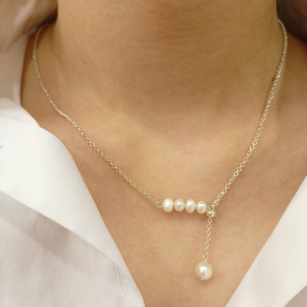 Kenina - Silver Pearl Pendant Necklace