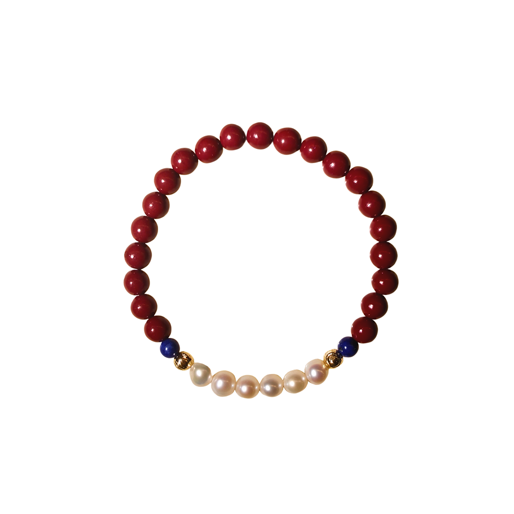 South Red Agate brings warmth, freshwater pearls add grace, and lapis lazuli offers calm wisdom—tied together with golden spacers. A symbolic harmony of love, intellect, and balance. Designed with comfort in mind for both daily and formal wear. everyday accessory.