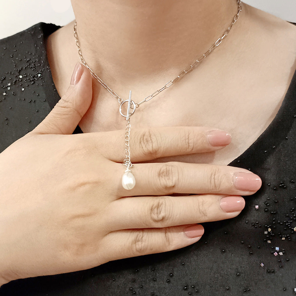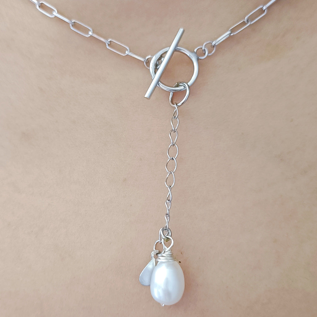 - Sterling silver chain, toggle clasp, extender chain, and fittings