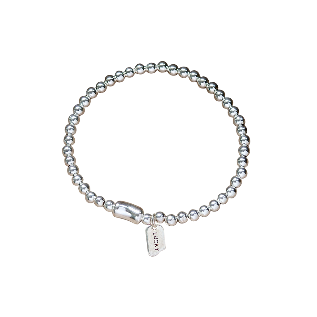Lucky - Stretch Silver Bead Bracelet
